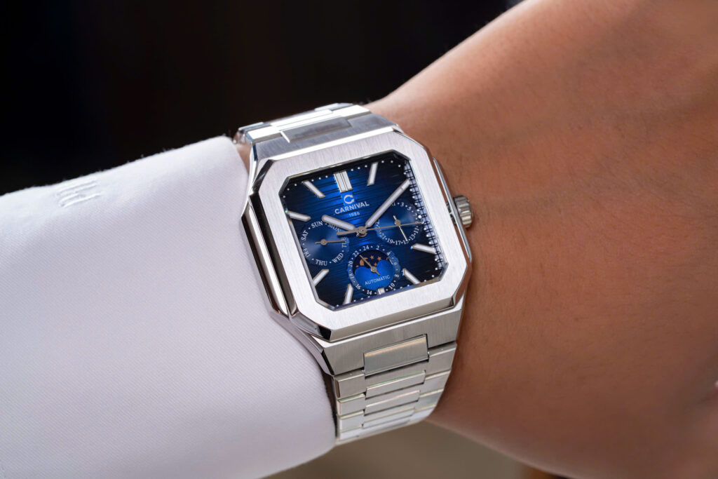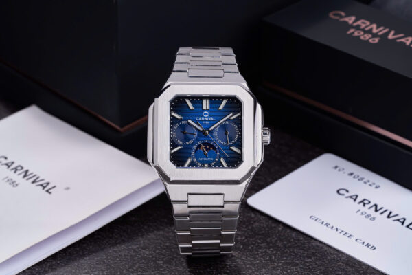 Đồng Hồ Nam Chính Hãng Carnival 8187G-VT-X Mặt Số Màu Xanh Ba Ô Lịch Automatic 42mm
