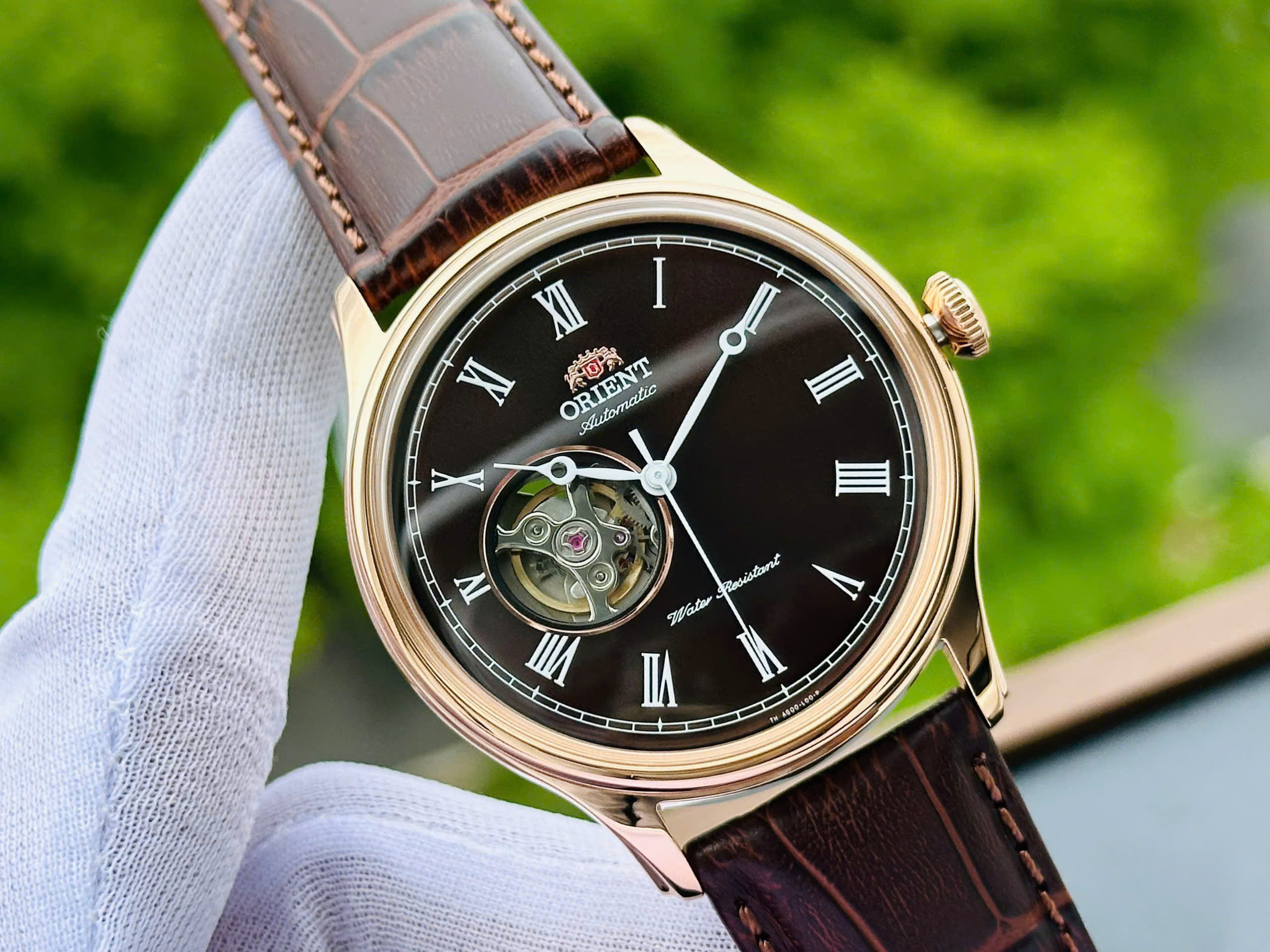 Đặt mua Đồng Hồ Nam Chính Hãng Orient Caballero FAG00001T0 Vỏ Mạ Vàng Hồng Mặt Số Màu Đen Cọc Số La Mã Thiết Kế Open Heart 43mm