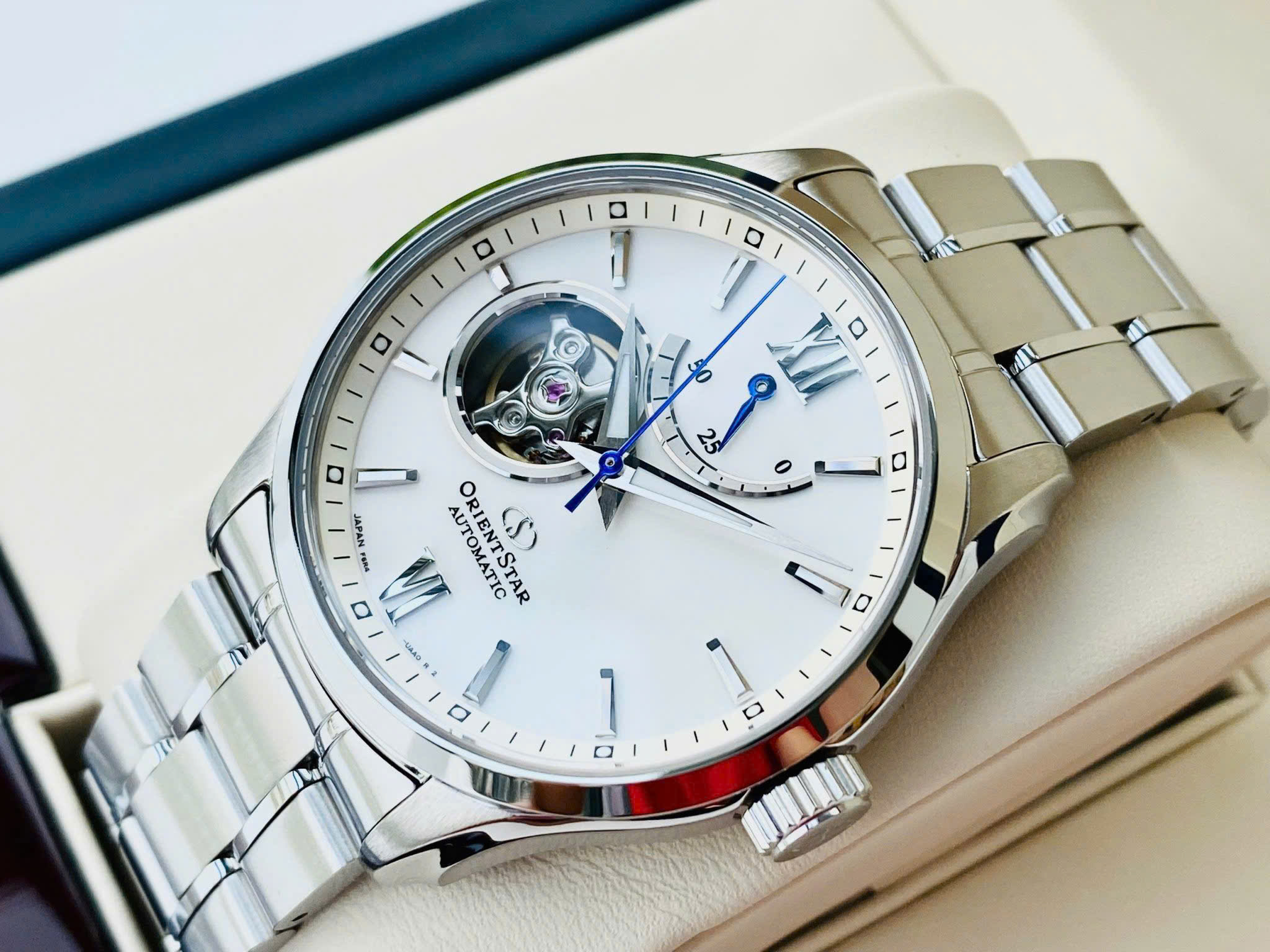 Đặt mua Đồng Hồ Nam Chính Hãng Orient Star Open Heart RE-AT0003S00B Mặt Số Màu Trắng Kim Xanh Lộ Cơ 39.5mm