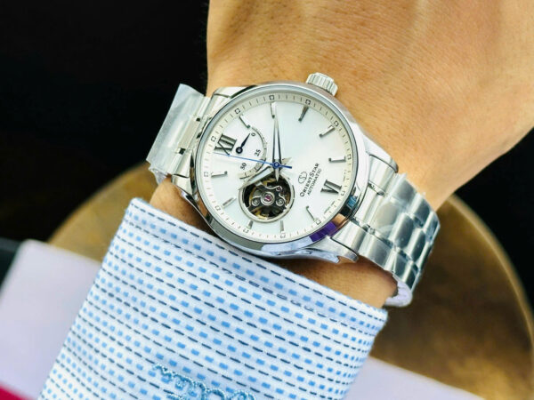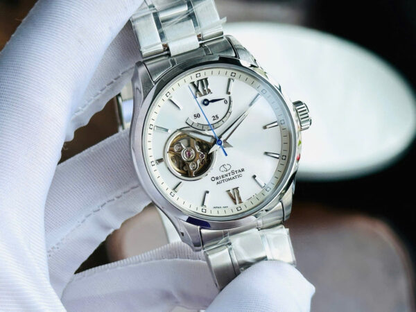 Đồng Hồ Nam Chính Hãng Orient Star Open Heart RE-AT0003S00B Mặt Số Màu Trắng Kim Xanh Lộ Cơ 39.5mm