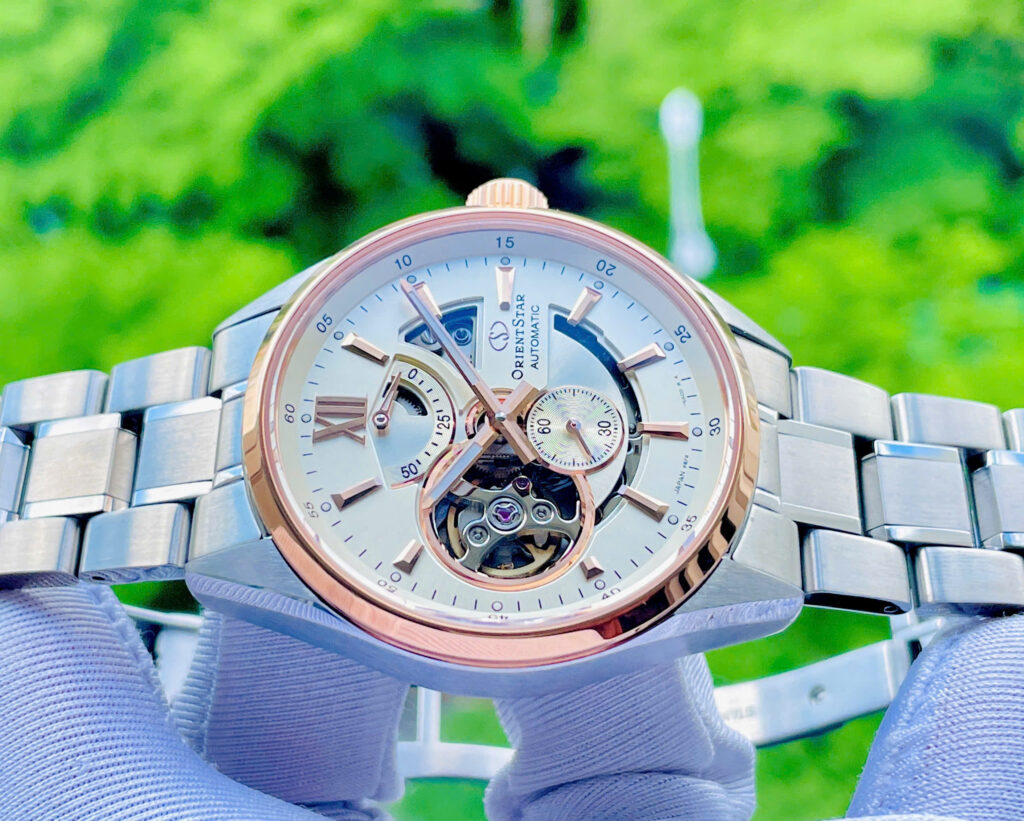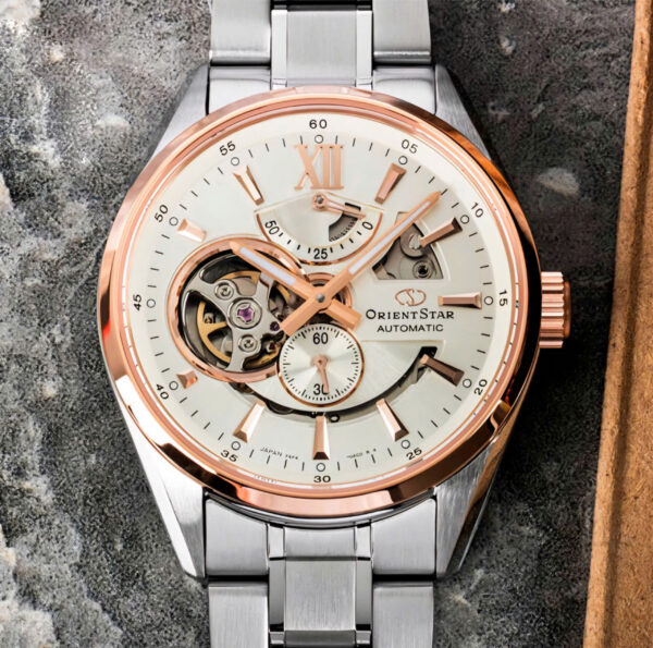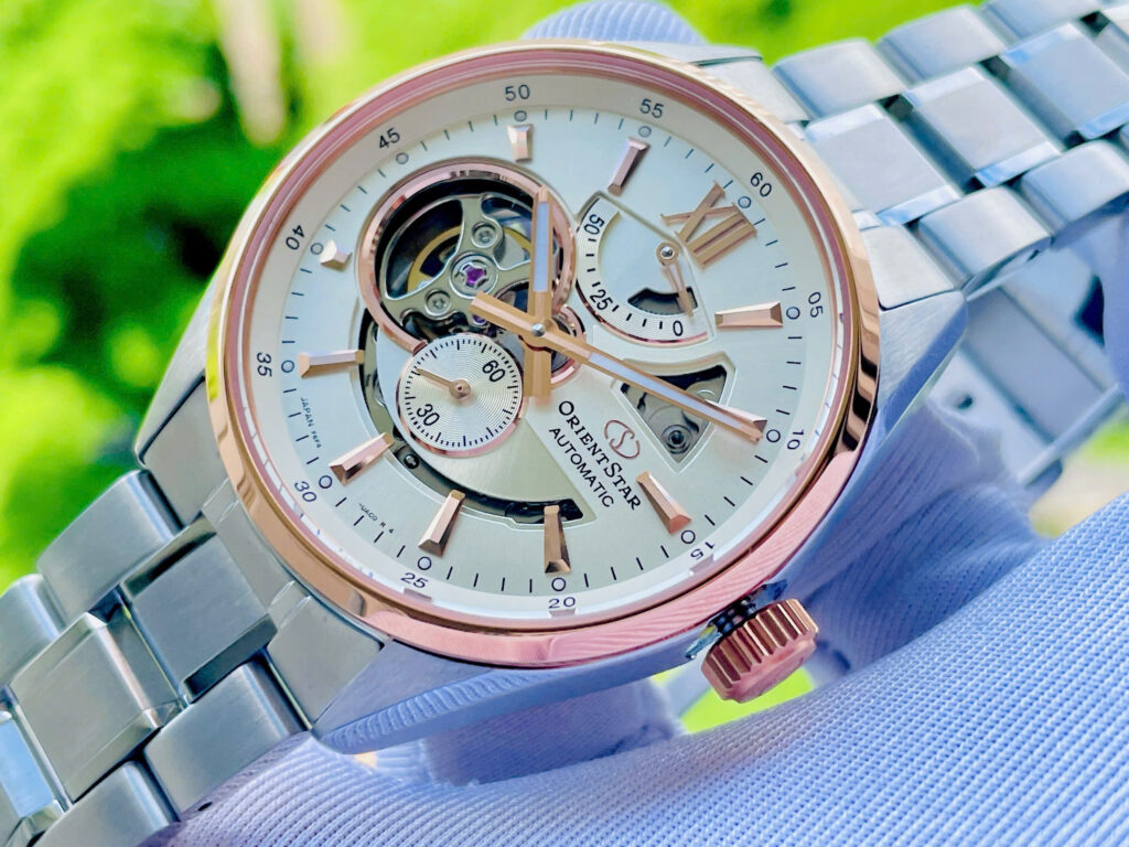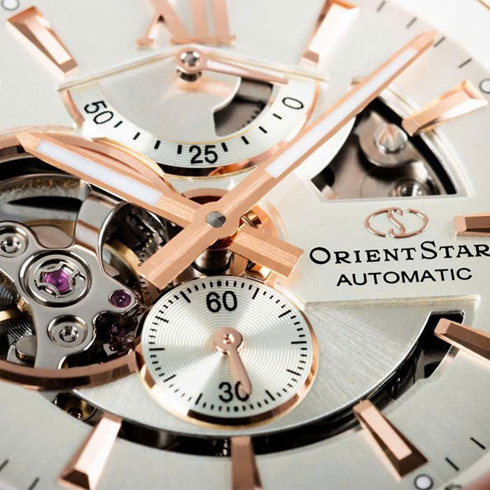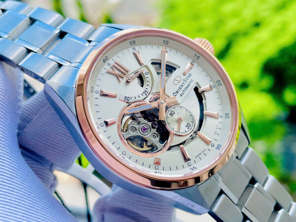 Đồng Hồ Nam Chính Hãng Orient Star Skeleton Joker DEMI Rose RE-AV0123G00B Mạ Vàng Hồng Mặt Số Màu Trắng Thiết Kế Lộ Cơ 41mm