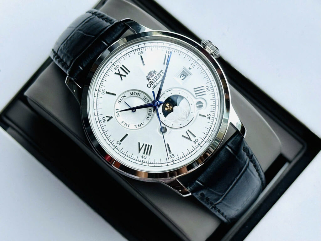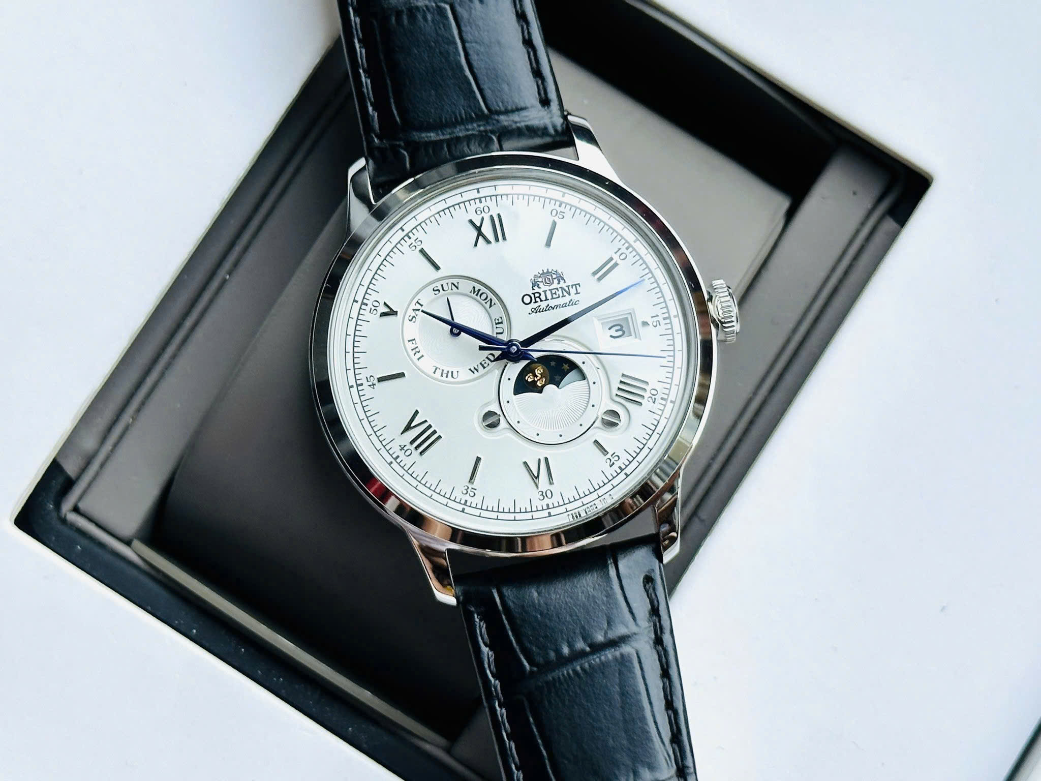 Đồng Hồ Nam Chính Hãng Orient Sun And Moon Gen 7 Classic RA-AK0802S10B Mặt Số Màu Trắng Cọc Số La Mã Dây Da 41.5mm