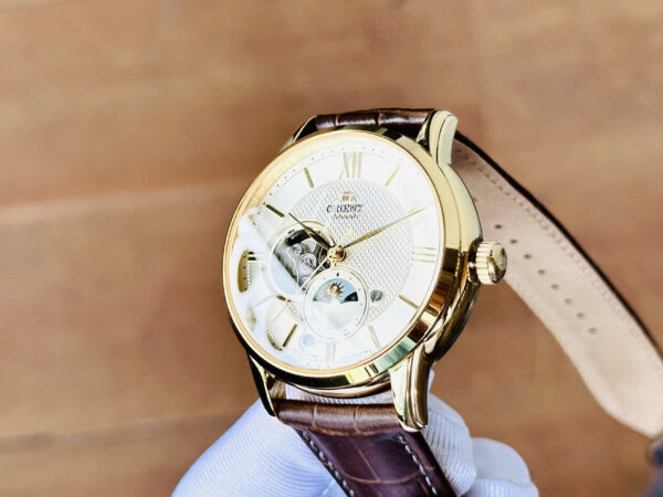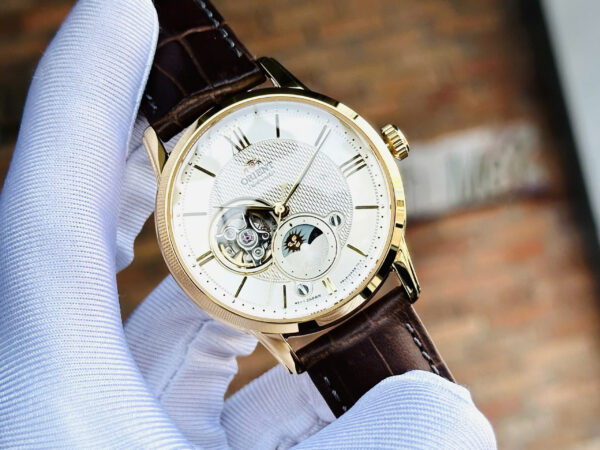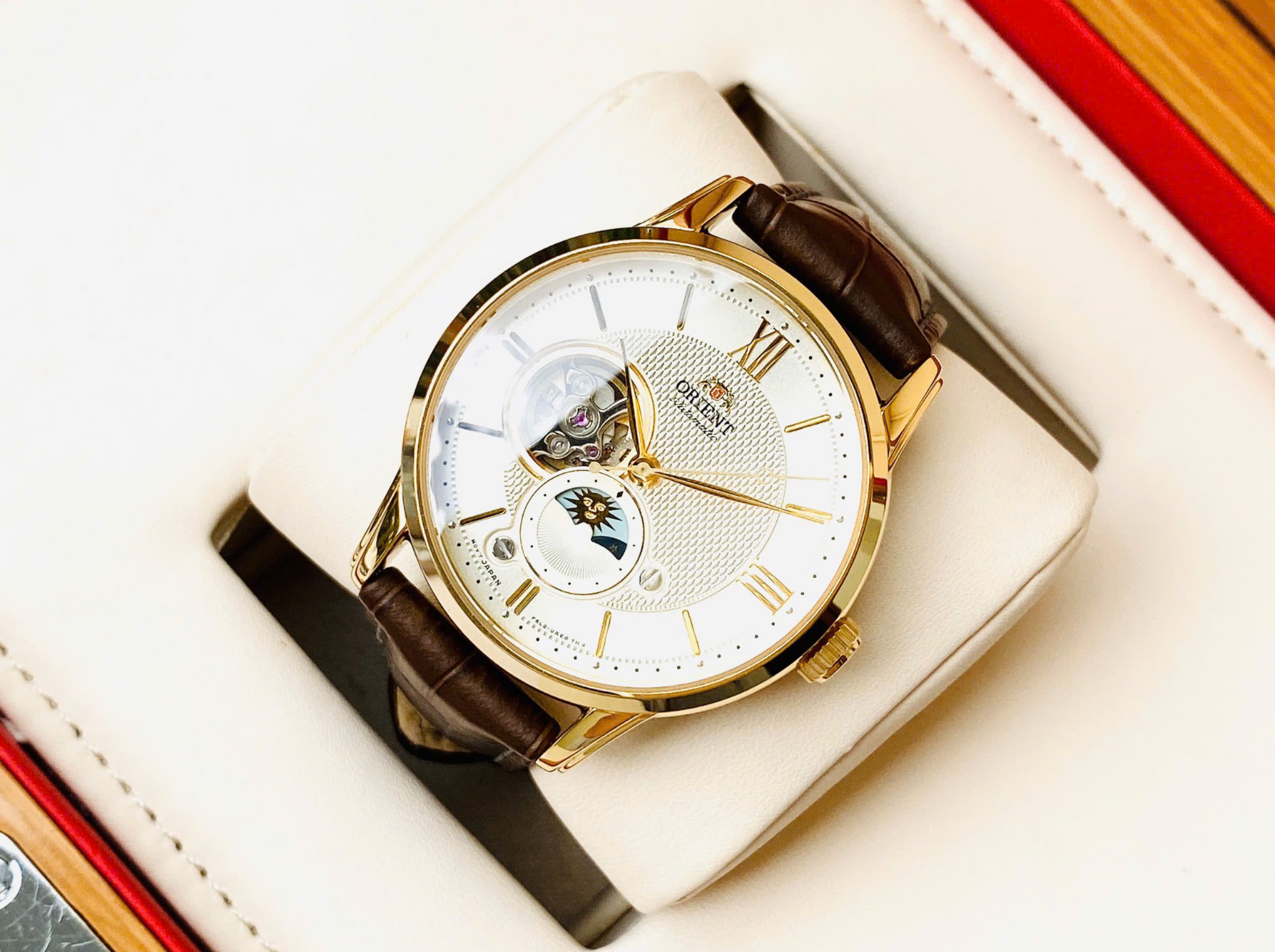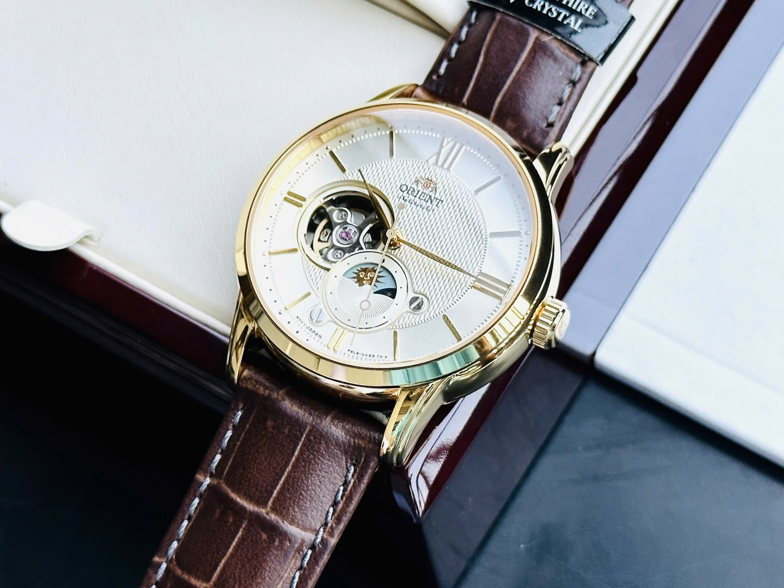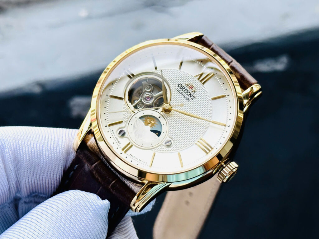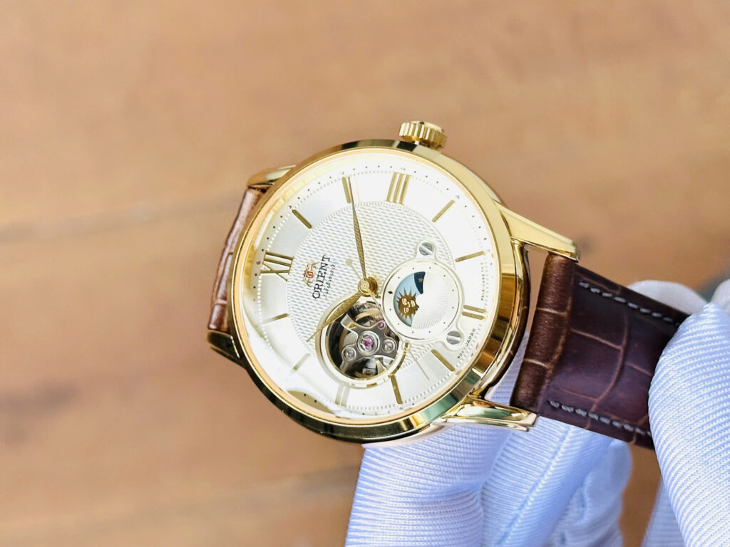Đồng Hồ Nam Chính Hãng Orient Sun Moon Gen 4 Open Heart RA-AS0010S10B Mạ Vàng Mặt Số Màu Trắng New Version 42mm