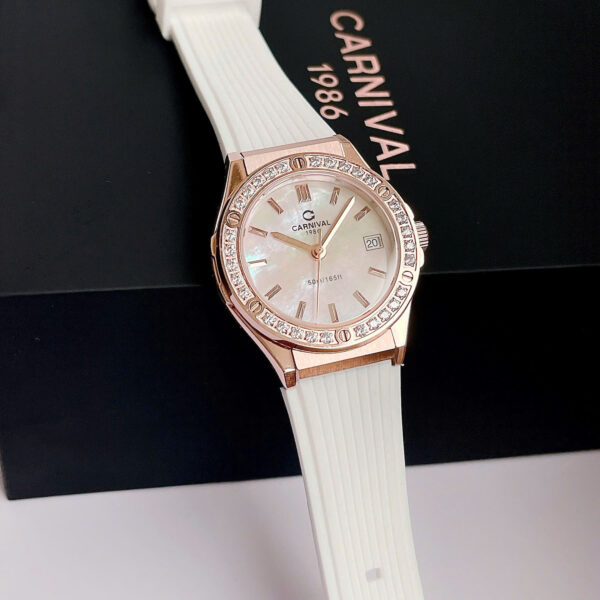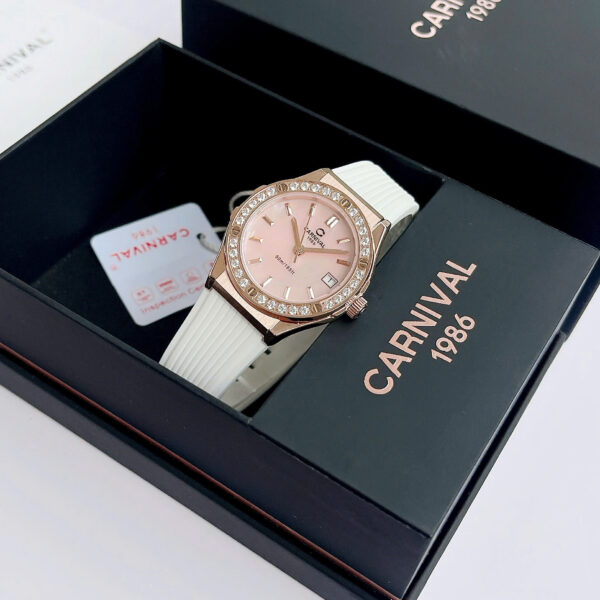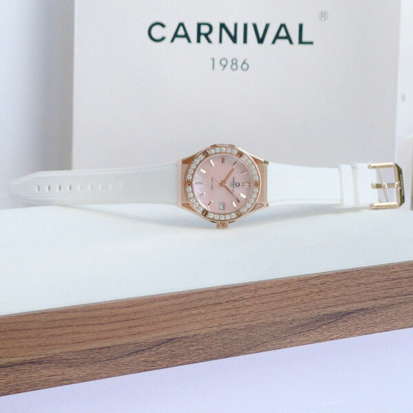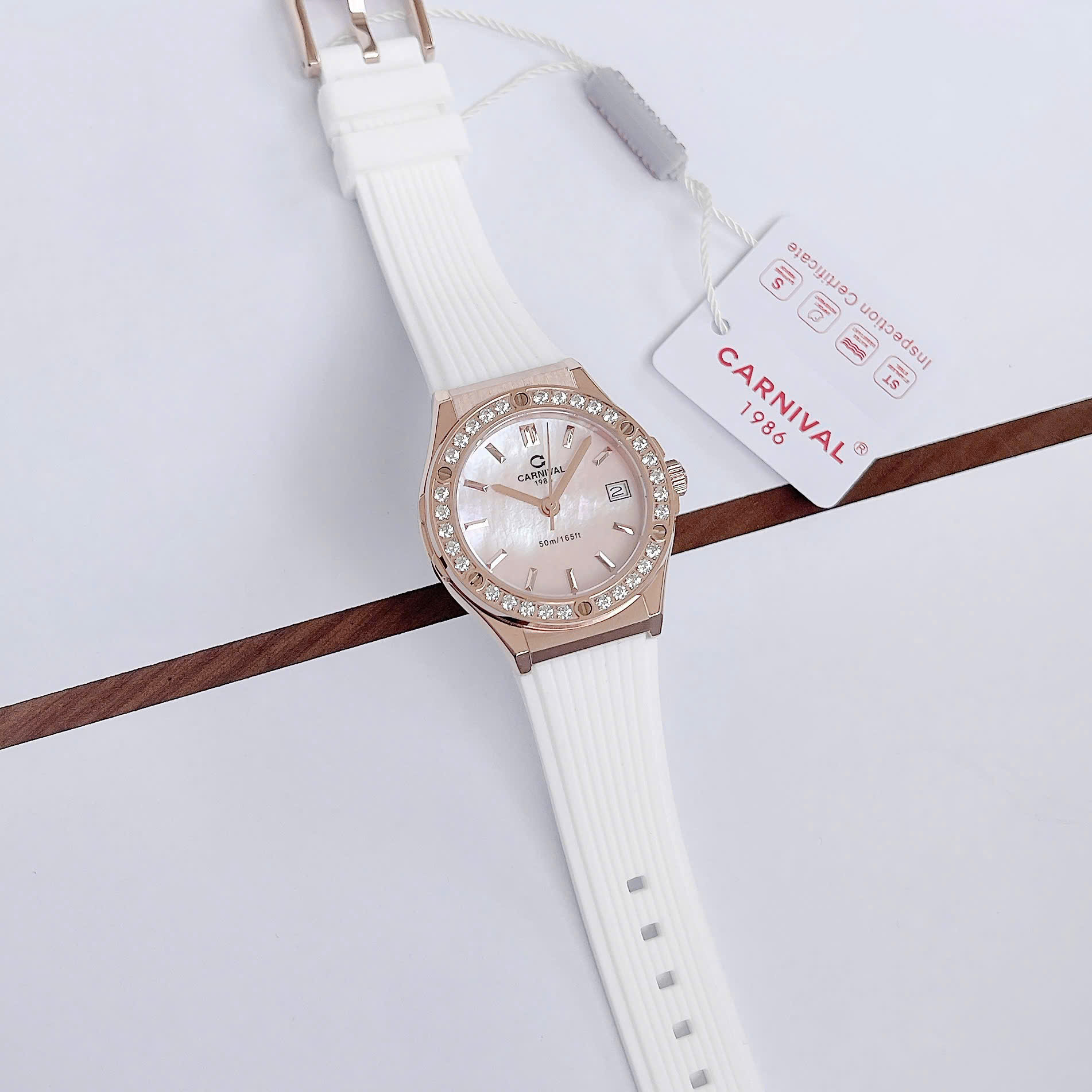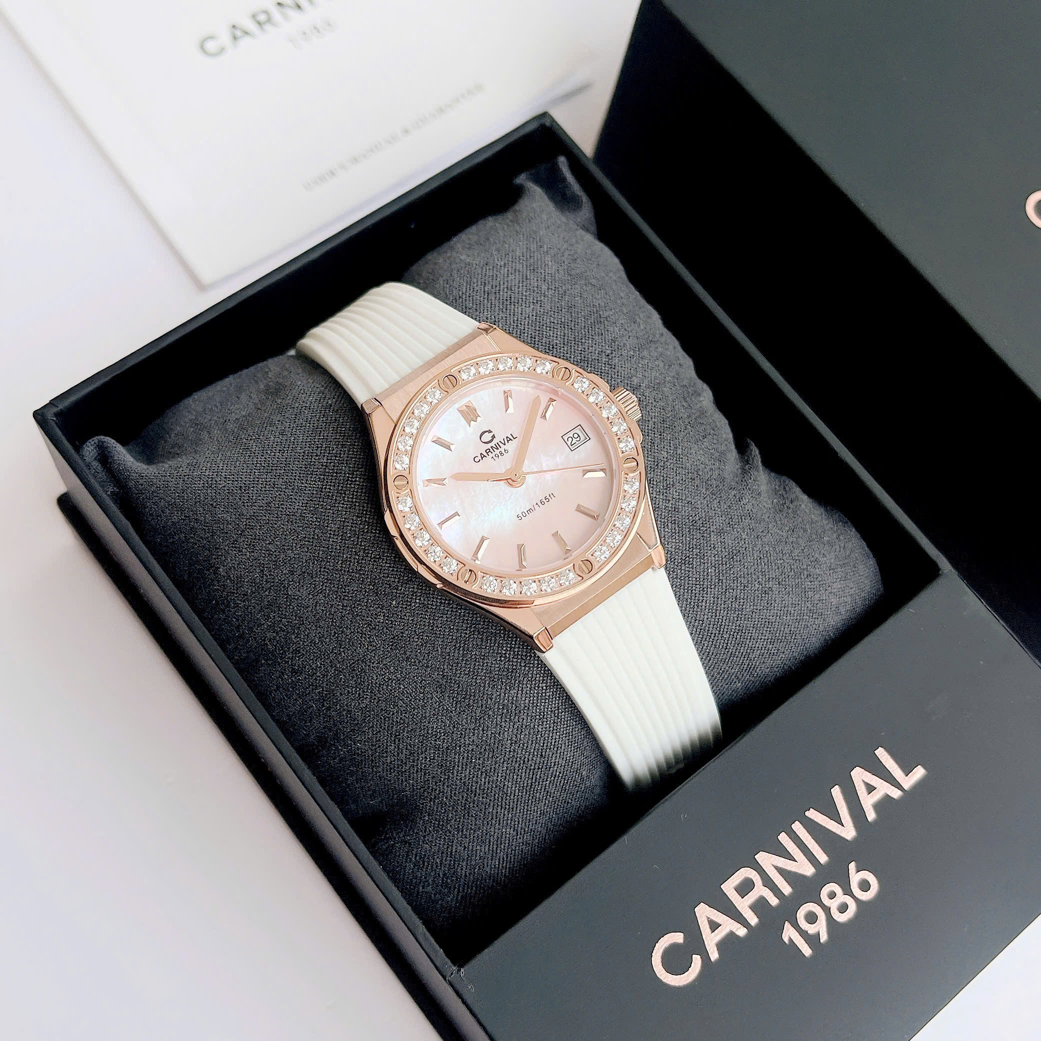 Đồng Hồ Nữ Chính Hãng Carnival 8168L2 Mặt Số Xà Cừ Tự Nhiên Vỏ Vàng Hồng Đính Đá 32mm
